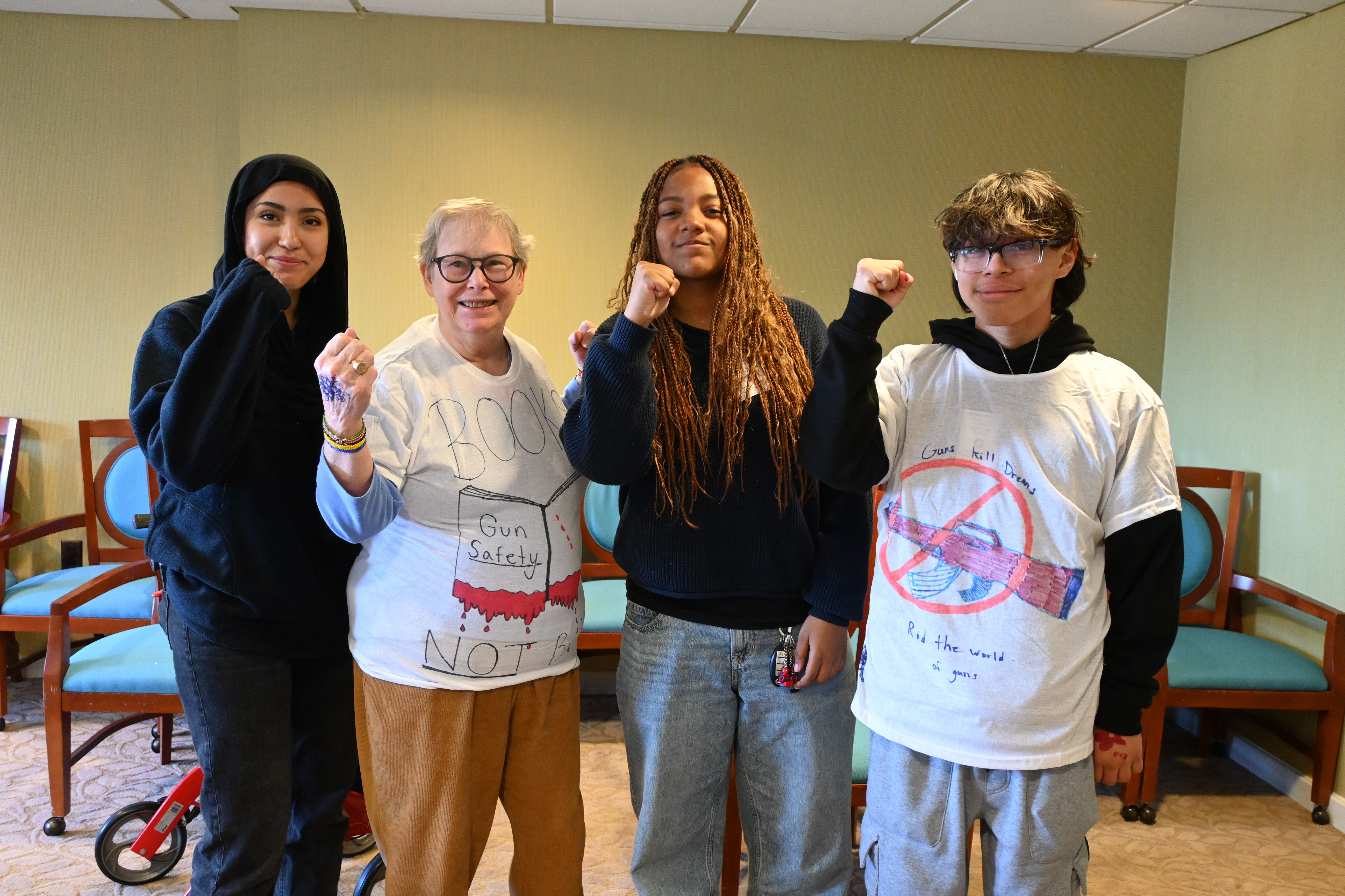 November 11th, 2025 - We partnered with Liberty's Promise to invite students from Falls Church High School to discuss important civic topics with residents at Goodwin House Baileys Crossroads. They made t-shirts!