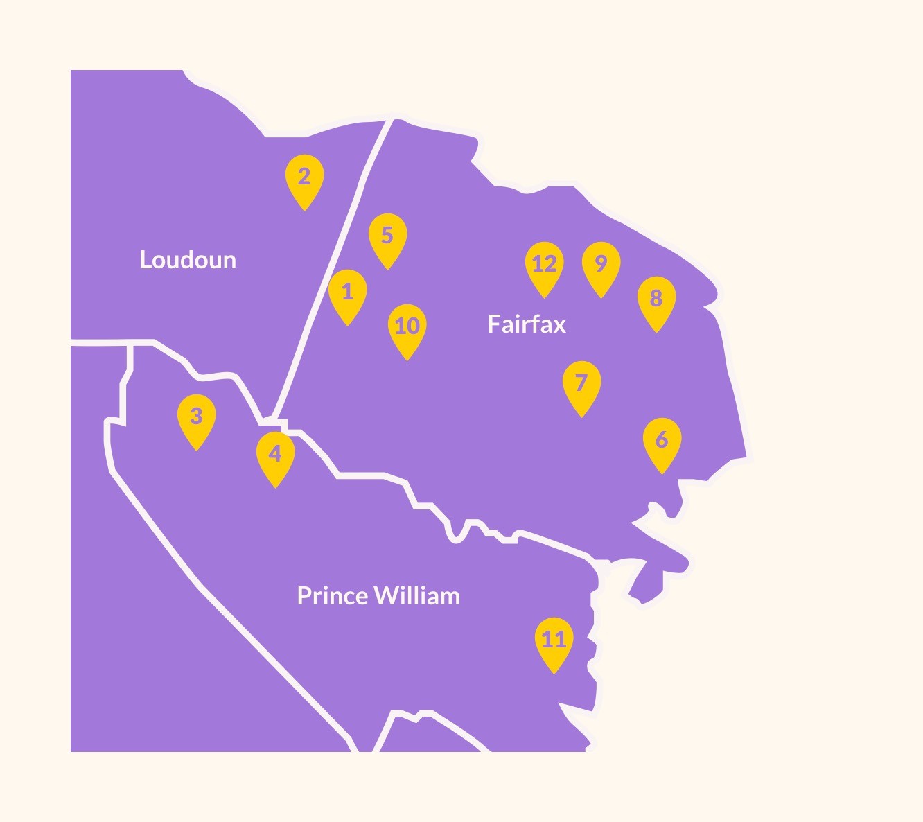 From Fairfax, Prince William, Loudoun, Alexandria, Falls Church, Arlington, and Washington D.C.